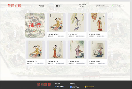 藍藍設計和長期客戶一起合作,設計開發了這個網站。團隊人員繪制了紅樓十二釵的古風插畫,將其中金陵十八釵的人物卡片作為NFT收藏卡片出售。通過古典文學和現在技術的結合,為創作者提供了更多的自由和經濟機會,同時也給予了收藏家更多的選擇和交易便利,目前卡片已全部售出。