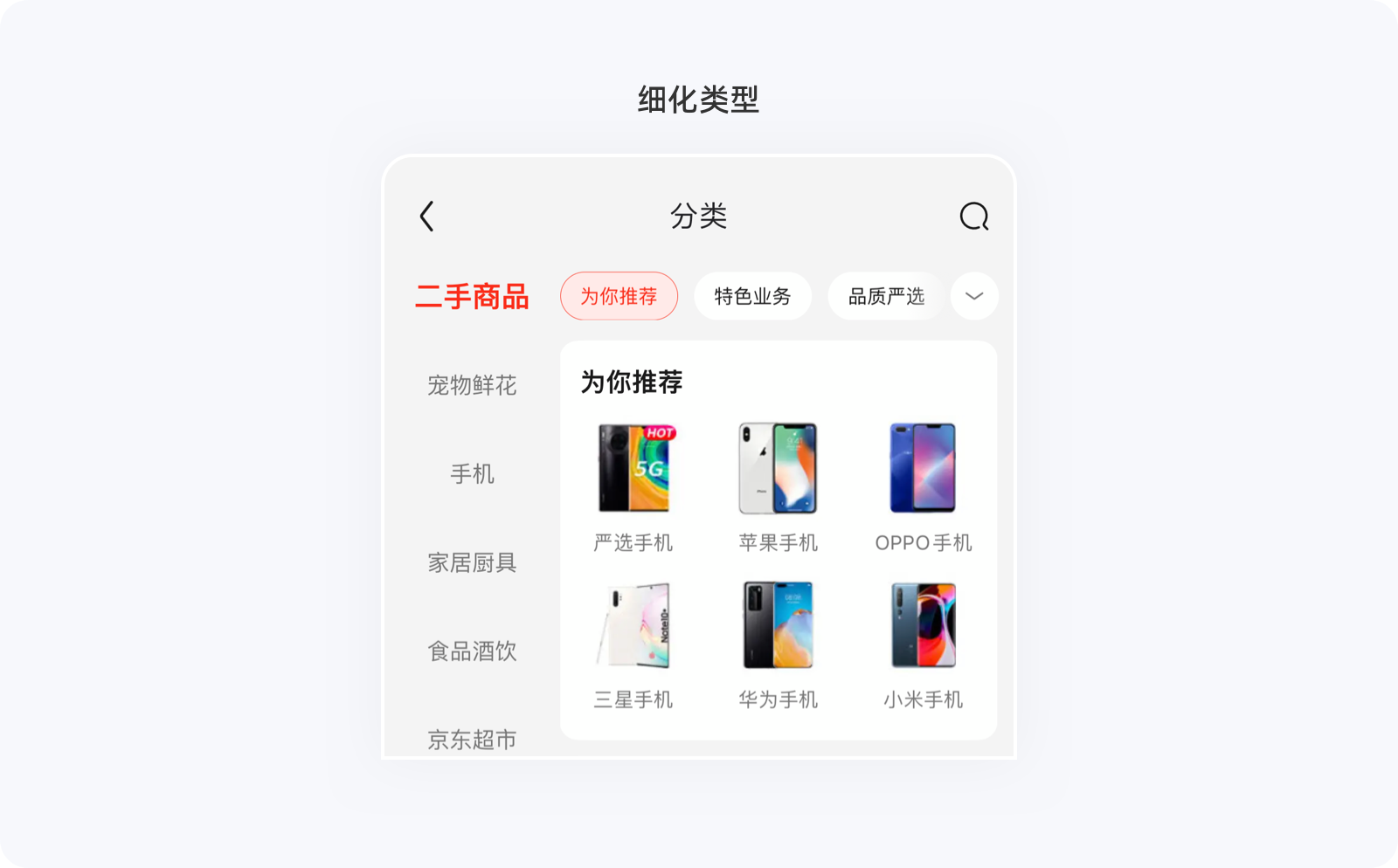 這里最為典型的例子就是電商平臺的分類,它通過一級、二級、甚至三級分類將商品所涉及到的類型合理的控制在有效范圍內,這些選項被分類/分組之后,關鍵信息得到強化,能輔助用戶快速作出決策。還有后面的二次篩選功能,幫助用戶進一步縮小范圍,選擇效率明顯會更高。當然,這不僅僅是依靠希克定律,還得結合運營需求、用戶數據等因素進行合理化分類。
