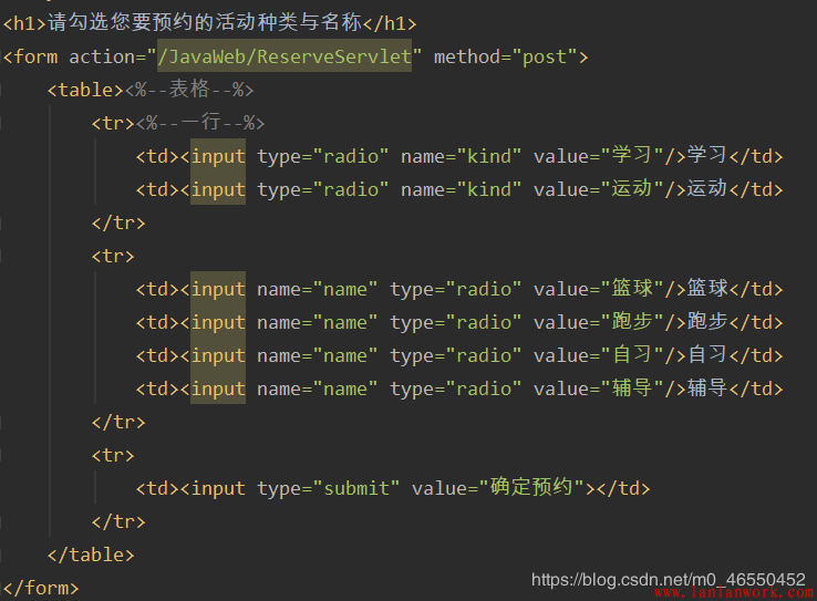 預約功能的實現更是與注冊功能的實現基本一致。所不同的應該是jsp頁面對單選框輸入的設置。