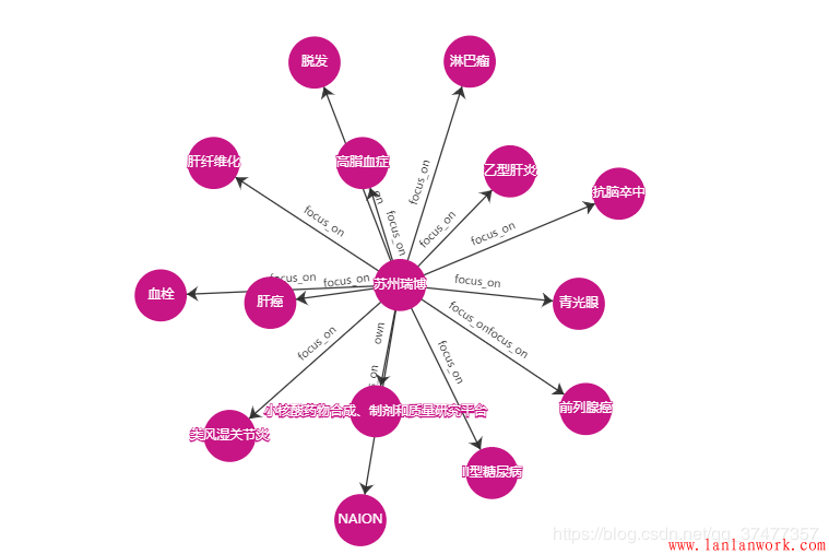找了做前端圖表展示的開源庫,D3.js和Echarts都能做,我拿Echarts實現了一下功能,先看一下在現在項目里一個基于知識圖譜查詢的實際效果:
