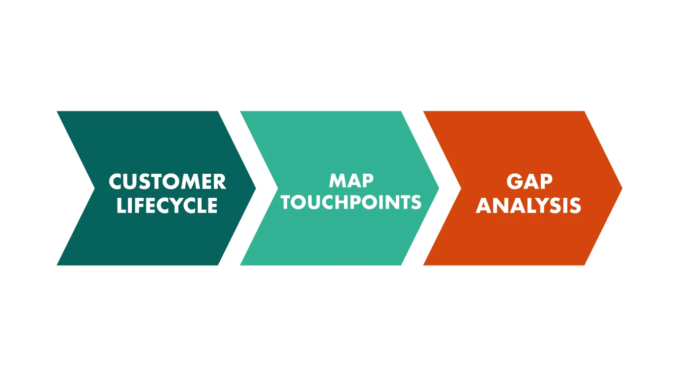 一旦你繪制了現有的接觸點,你就可以將其置于客戶的接觸點之上,從而概述當前的工作以及為吸引客戶而應該做的事情。