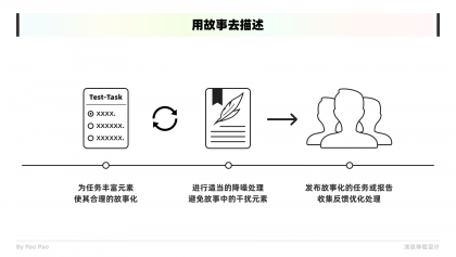 故事的元素通常會更豐富更有趣味,用故事敘事更能提升用戶的興趣和關(guān)注,這能便于構(gòu)建共情。因此當(dāng)你發(fā)布測試任務(wù)或者撰寫研究報告時,都可以加入背景故事或用故事敘事,便于對象更容易理解和共情,你甚至可以用筆繪制故事版,像四格漫畫一般,因為用圖傳達概念或信息更容易讓人記住或回想起來,并且當(dāng)你用這些方法時,自身也能加強理解。共情不是單向傳遞的,不要高估對方的理解能力,讓你的信息更簡單明了的傳遞也是重要的共情應(yīng)用!