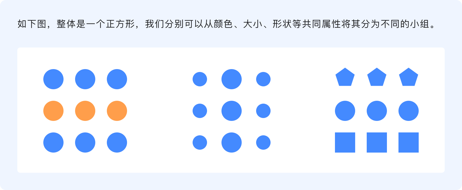 相似性原則指出,有共同視覺元素的物體看起來更有關(guān)聯(lián)性,我們傾向于將彼此相似的元素(形狀、尺寸、方向、顏色...)分為一組,這就意味著當(dāng)功能、含義和層次結(jié)構(gòu)相同時,更應(yīng)該讓它們在視覺上保持一致性。
