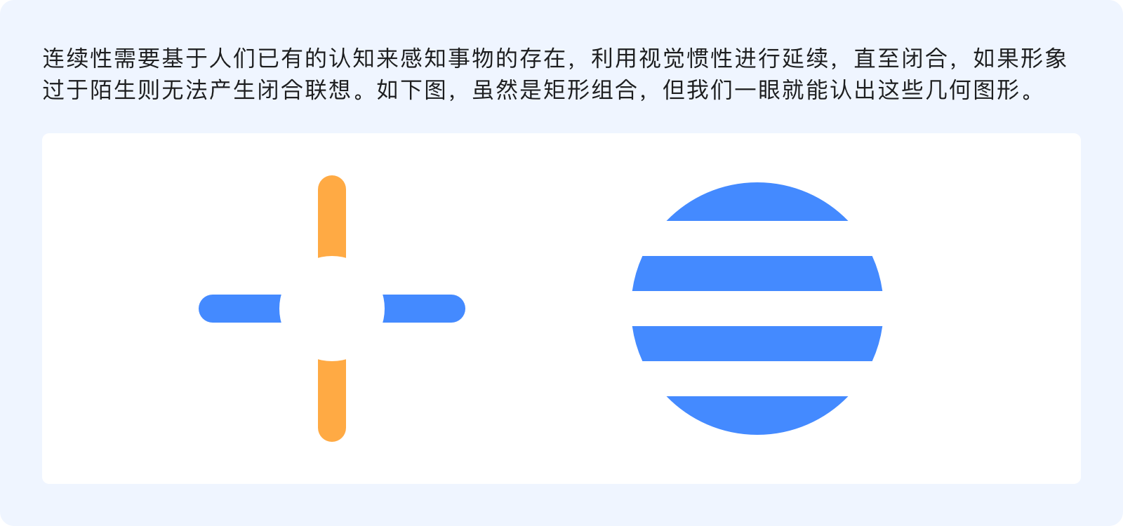 連續(xù)性原則指出,人的視覺傾向于完整的連接一個圖形,而不是零散的碎片,通過感知事物的形狀和運動方向?qū)⒎稚⒌脑剡B接在一起,使直線繼續(xù)成為直線、曲線繼續(xù)成為曲線并朝著特定的方向延續(xù)。