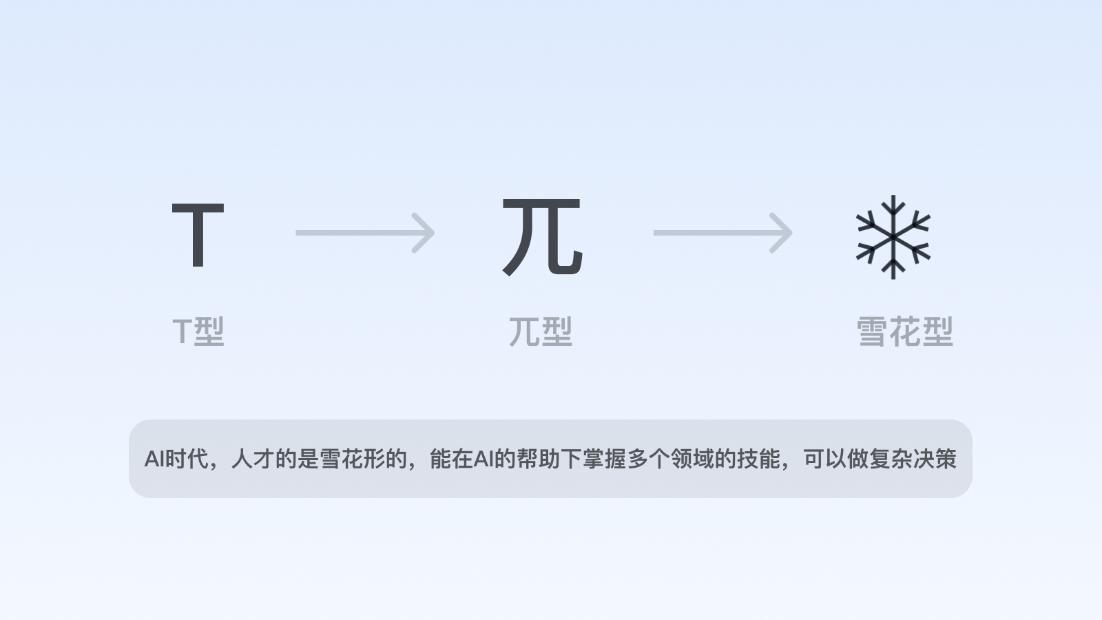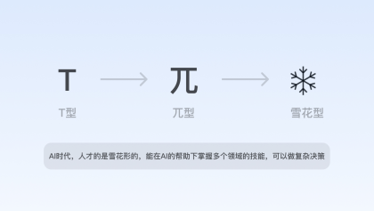 在人工智能時(shí)代,部分重復(fù)性、初級(jí)的設(shè)計(jì)需求將被替代,設(shè)計(jì)師乃至互聯(lián)網(wǎng)職場(chǎng)人的能力維度將隨之會(huì)有所改變,善用AI的綜合能力素養(yǎng)變?yōu)閯傂瑁谀芰S度上接近于“雪花型”。