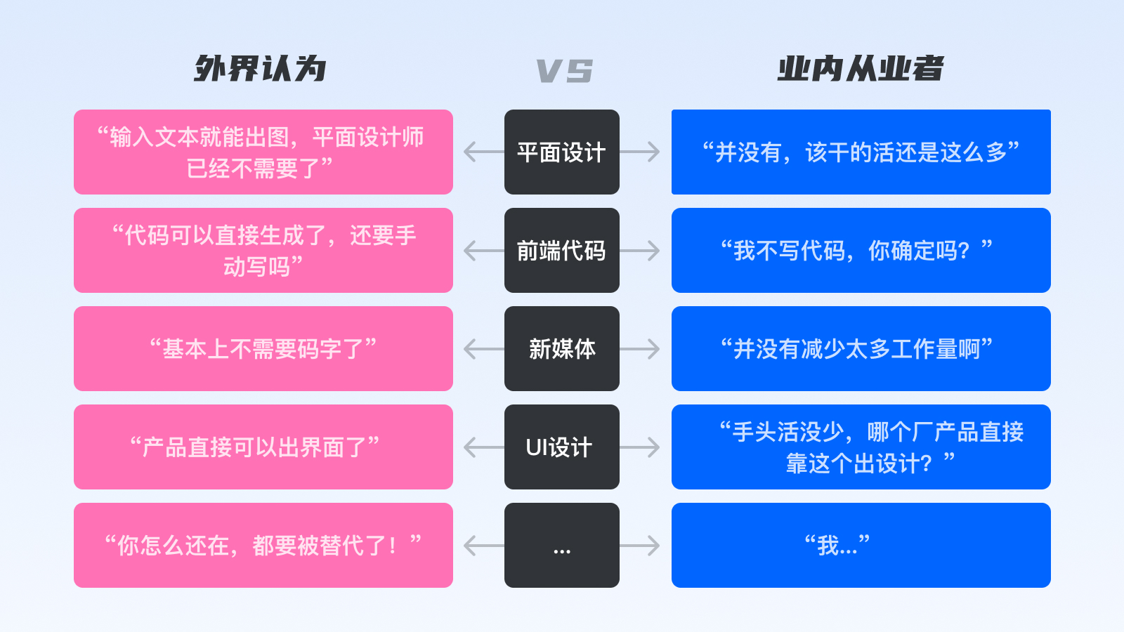 有個(gè)有趣的現(xiàn)象,不管是什么崗位,外界對(duì)AI的應(yīng)用程度,總比行業(yè)從業(yè)者要“樂觀”很多,比如UI、前端崗位,感覺已經(jīng)不太需要他們參與了。