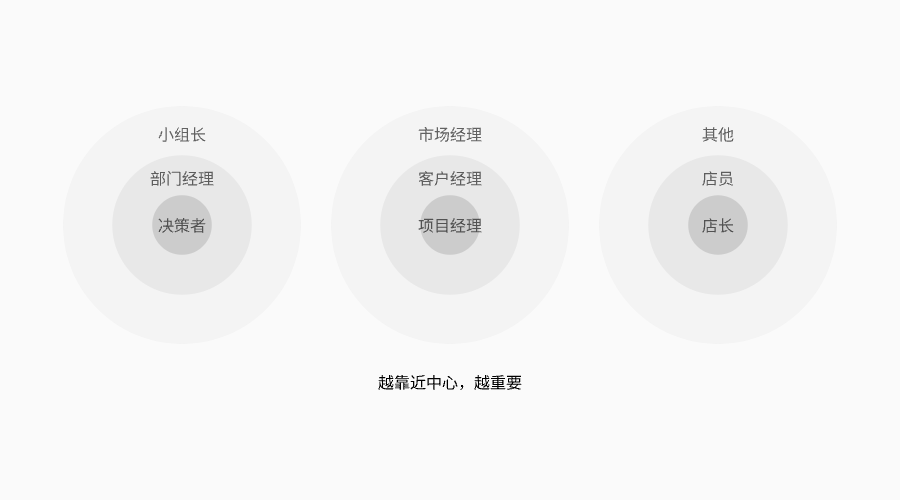 越靠近核心角色,代表重要程度越高,這就意味著,我們做這個需求的時候要根據重要程度排優先級,才能符合需求。