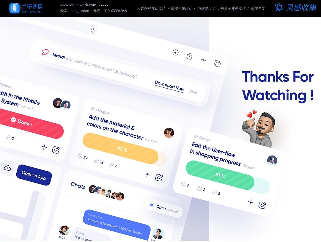 藍藍設計(www.xintaizi.com )是一家專注而深入的界面設計公司,為期望卓越的國內外企業提供卓越的大數據可視化界面設計、B端界面設計、桌面端界面設計、APP界面設計、圖標定制、用戶體驗設計、交互設計、UI咨詢、高端網站設計、平面設計,以及相關的軟件開發服務,咨詢電話:01063334945。我們建立了一個微信群,每天分享國內外優秀的設計,有興趣請加入一起學習成長,咨詢及進群請加藍小助微信ben_lanlan。