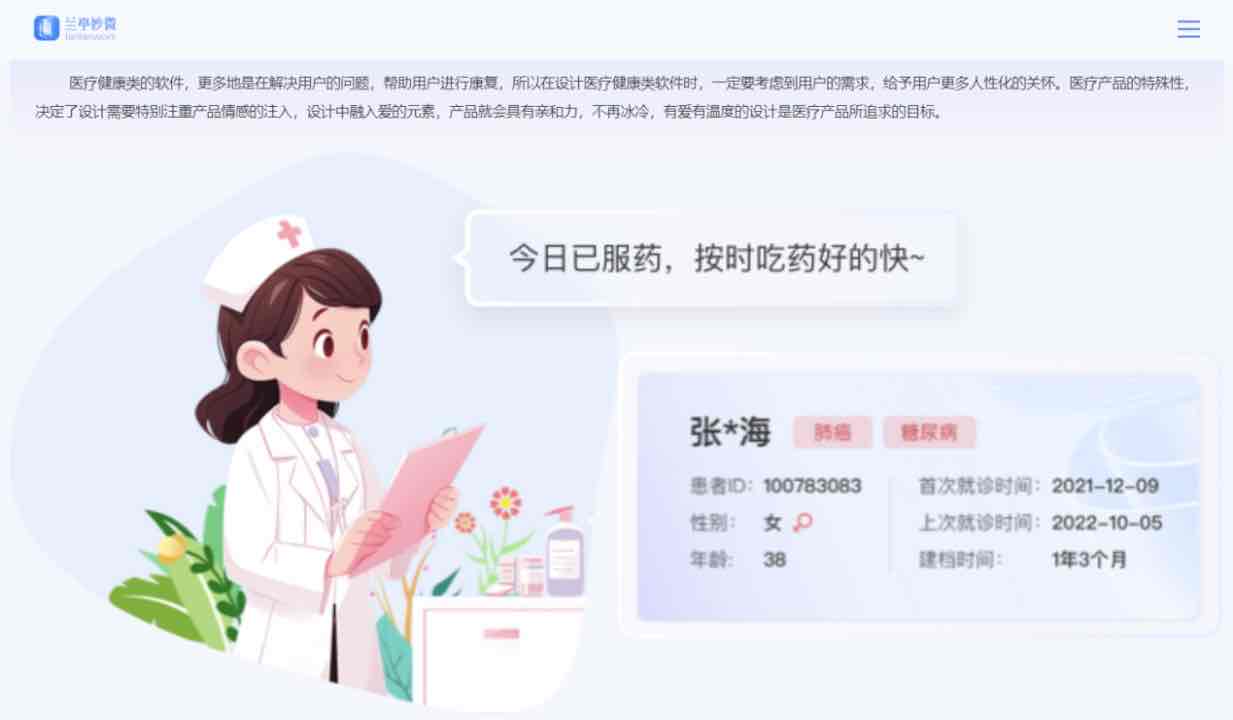 醫(yī)療健康類的軟件,更多地是在解決用戶的問題,幫助用戶進(jìn)行康復(fù),所以在設(shè)計(jì)醫(yī)療健康類軟件時(shí),一定要考慮到用戶的需求,給予用戶更多人性化的關(guān)懷。醫(yī)療產(chǎn)品的特殊性,決定了設(shè)計(jì)需要特別注重產(chǎn)品情感的注入,設(shè)計(jì)中融入愛的元素,產(chǎn)品就會(huì)具有親和力,不再冰冷,有愛有溫度的設(shè)計(jì)是醫(yī)療產(chǎn)品所追求的目標(biāo)。