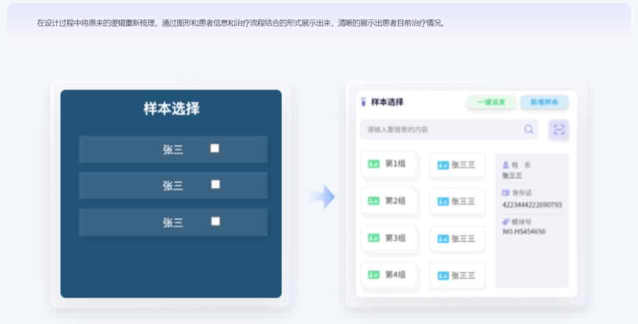在設(shè)計(jì)過程中將原來的邏輯重新梳理,通過圖形和患者信息和治療流程結(jié)合的形式展示出來,清晰的展示出患者目前治療情況。