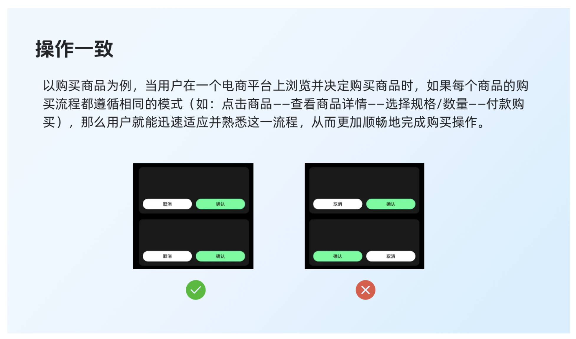 “一致性”作為規則或手段,服務于提升用戶體驗的原則。規則與原則一致時,促進業務共識與用戶價值;沖突時,原則優先。用戶體驗原則指導下的一致性,要超越表面控件統一,更在于產品決策與價值取向的一致。必要時,為更好的用戶體驗,可在規則上讓步以實現原則統一。打破規則需慎重權衡,確保用戶便利足以彌補理解成本,需長期全局考量。規則非僵化教條,而是引導我們謹慎創新的框架。