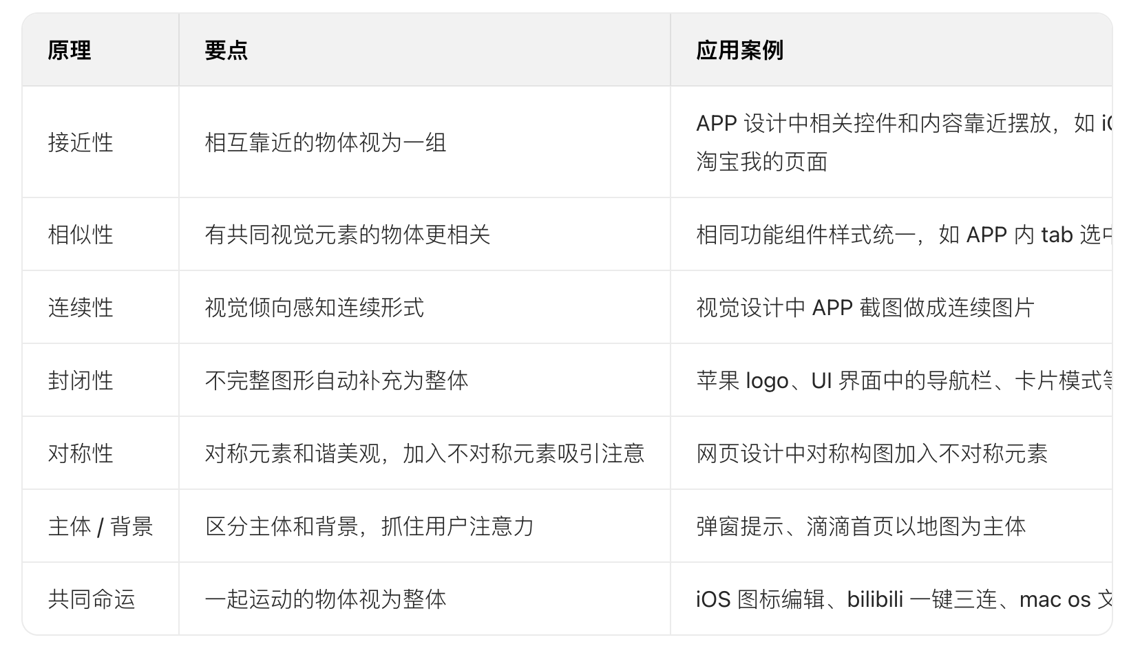 • 接近性原理:將相關元素靠近擺放,使界面層次有序,減少視覺噪音。如 APP 設計中,把相關的控件和內容放在一起,用戶更易感知它們的相關性,像 iOS 通用設置頁面,相關功能分組靠近排列。