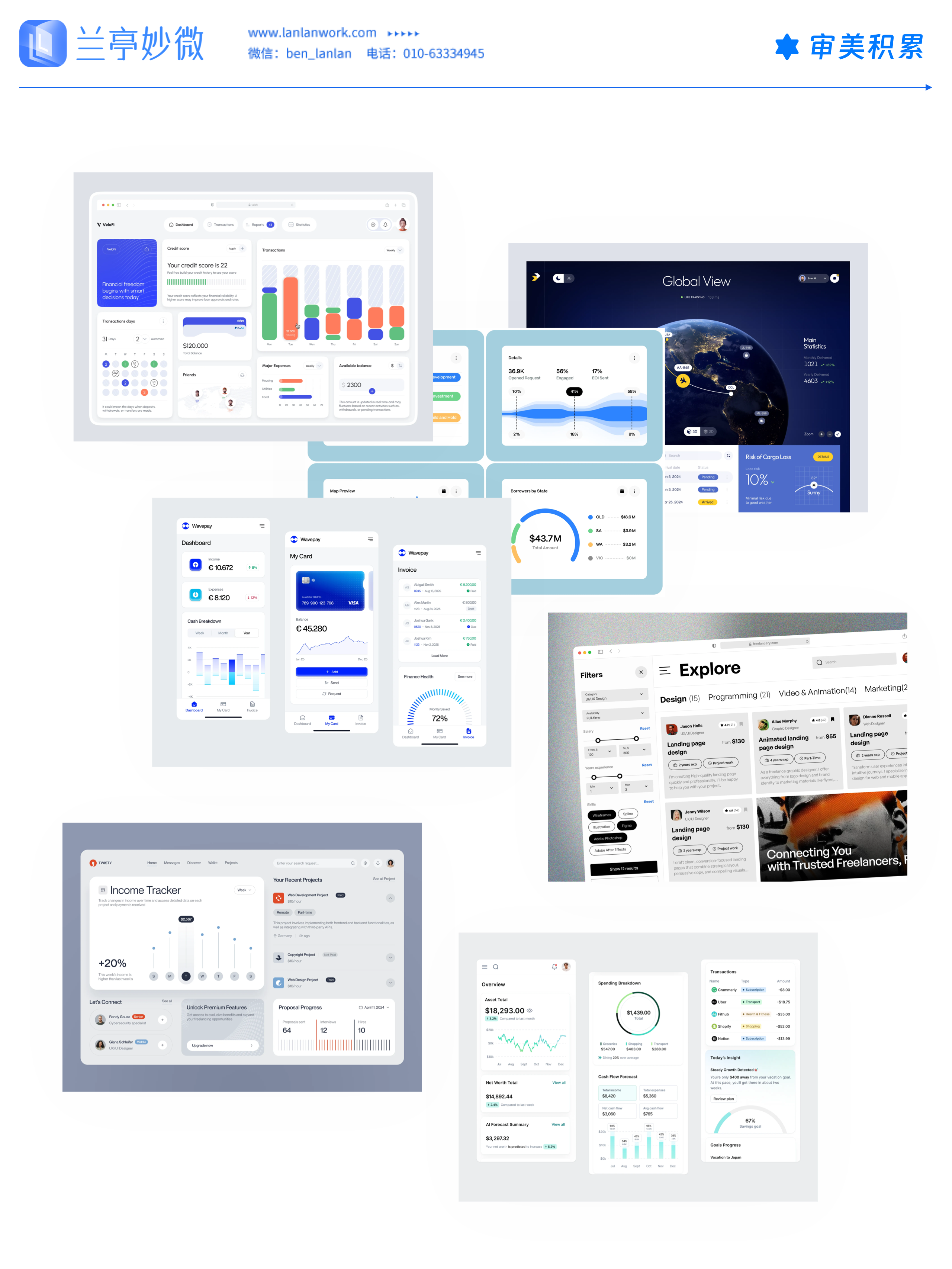 • 數(shù)據(jù)驅動:多個頁面核心是數(shù)據(jù)追蹤(收入、支出、信用分數(shù)、項目進度),界面清晰展示變化趨勢。