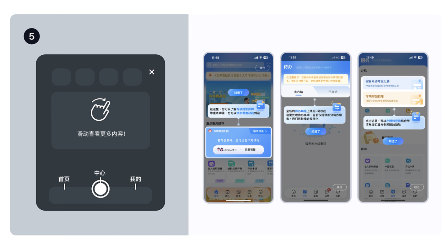 • 例子:稅務 APP 新增 “待辦功能” 后,會在 “待辦” 入口旁彈氣泡,告訴用戶 “這里能處理未辦結事項”,用戶點 “知道了” 就關閉,不影響正常使用;