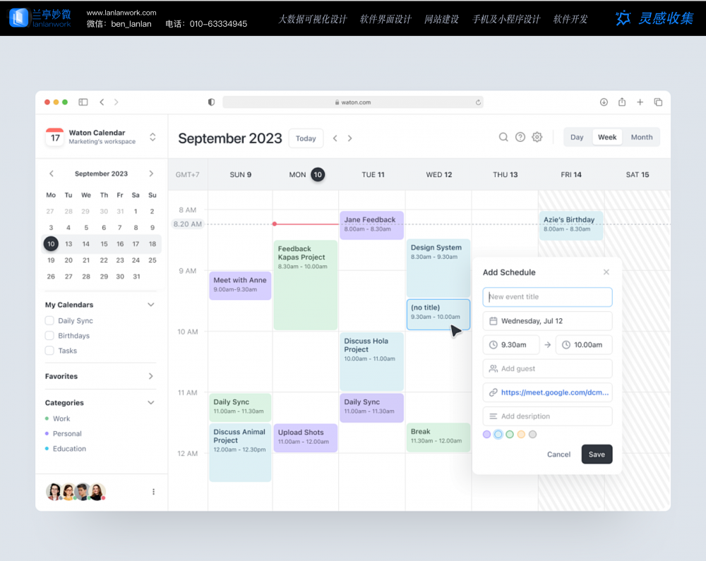 • 信息可視化分類:以差異化色塊區分工作會議、個人事務、跨部門協作等場景,鼠標懸停即可查看參會人、會議鏈接等核心信息,無需跳轉詳情頁;