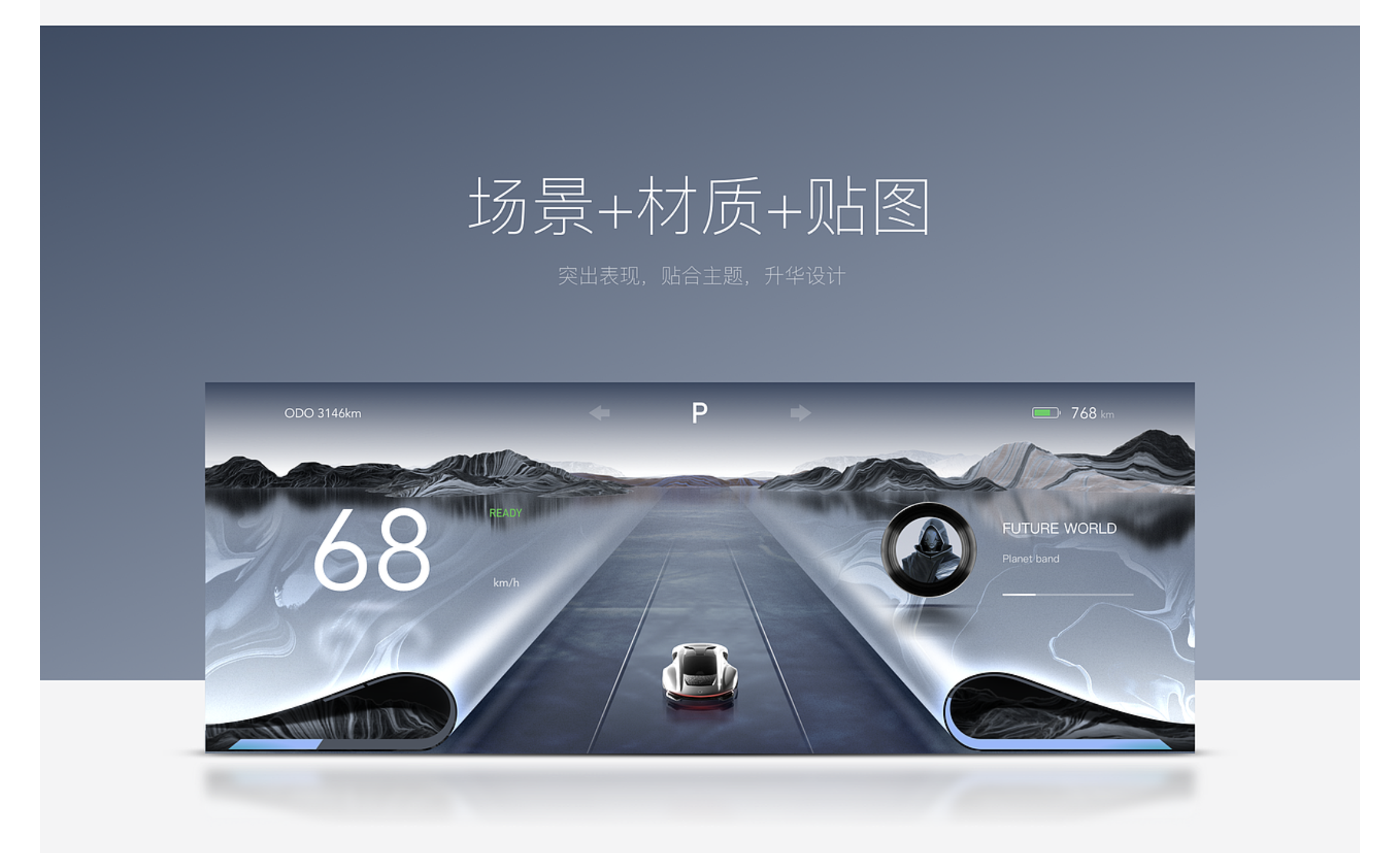 - 磨砂玻璃質感:通過半透明效果與輕微顆粒感,營造簡約高級的科技感,適合未來座艙設計,可應用于儀表面板整體,搭配光影效果呈現通透感;