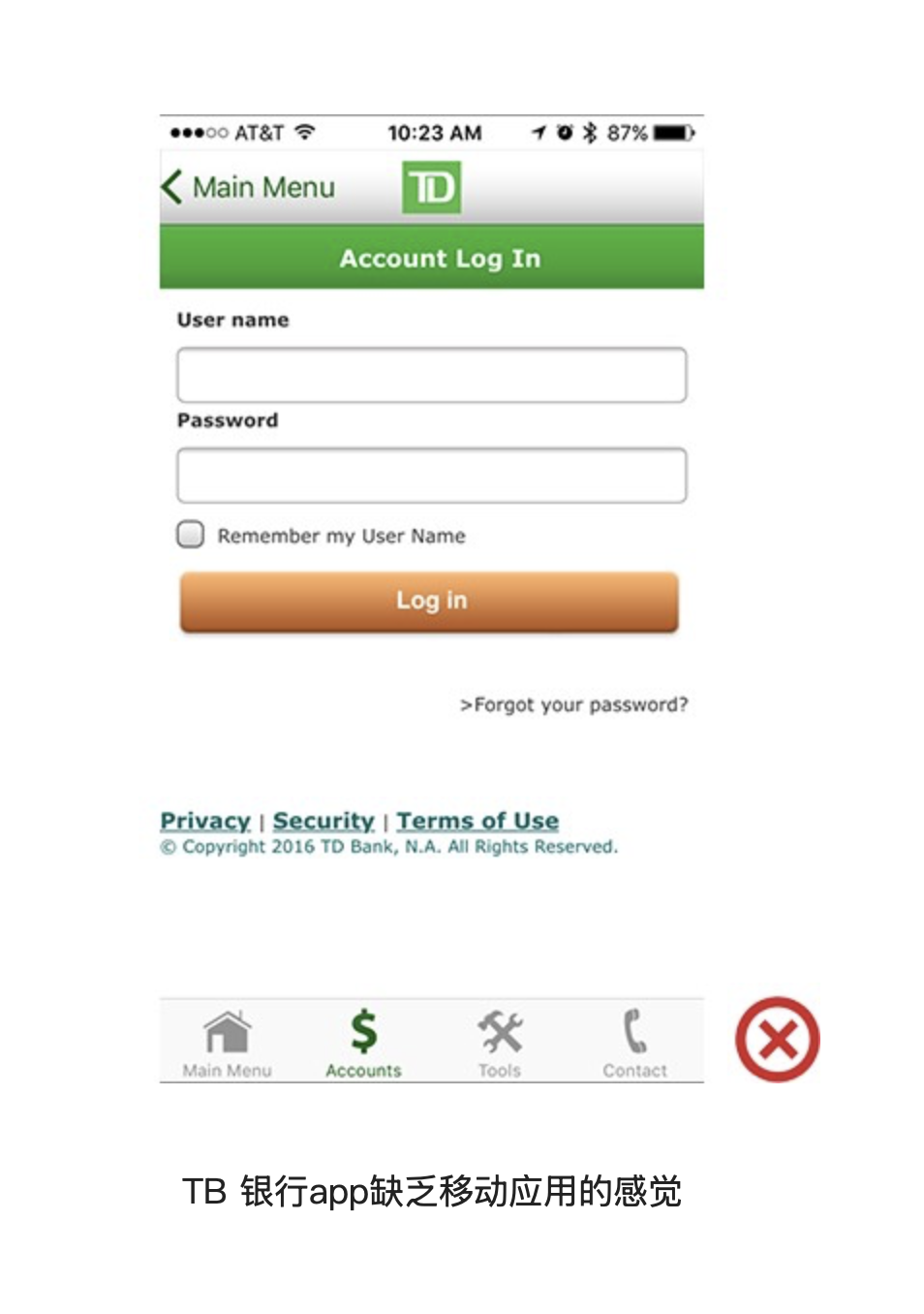網(wǎng)頁端的交互模式與頁面元素,并不完全適用于移動 App。網(wǎng)頁中常用下劃線表示超鏈接,但在移動應(yīng)用中,用戶更習(xí)慣通過按鈕完成跳轉(zhuǎn),下劃線設(shè)計會顯得突兀且不符合使用預(yù)期。曾有某銀行的 iOS 端 App,直接將網(wǎng)頁代碼包裝成應(yīng)用,界面中保留了網(wǎng)頁式的下劃線鏈接和底部版權(quán)信息,讓用戶誤以為打開的是移動網(wǎng)頁,而非原生 App,嚴(yán)重影響了產(chǎn)品的專業(yè)性與使用體驗。
