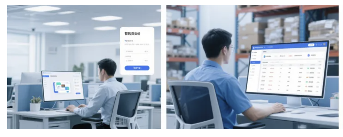 - 針對采購員:核心需求是比價、下單、跟進采購進度,設(shè)計重點為打造智能比價工具,自動整合供應(yīng)商報價信息,提供快速下單入口,同時實時展示采購單的審批、發(fā)貨、到貨狀態(tài),讓采購流程可視化。