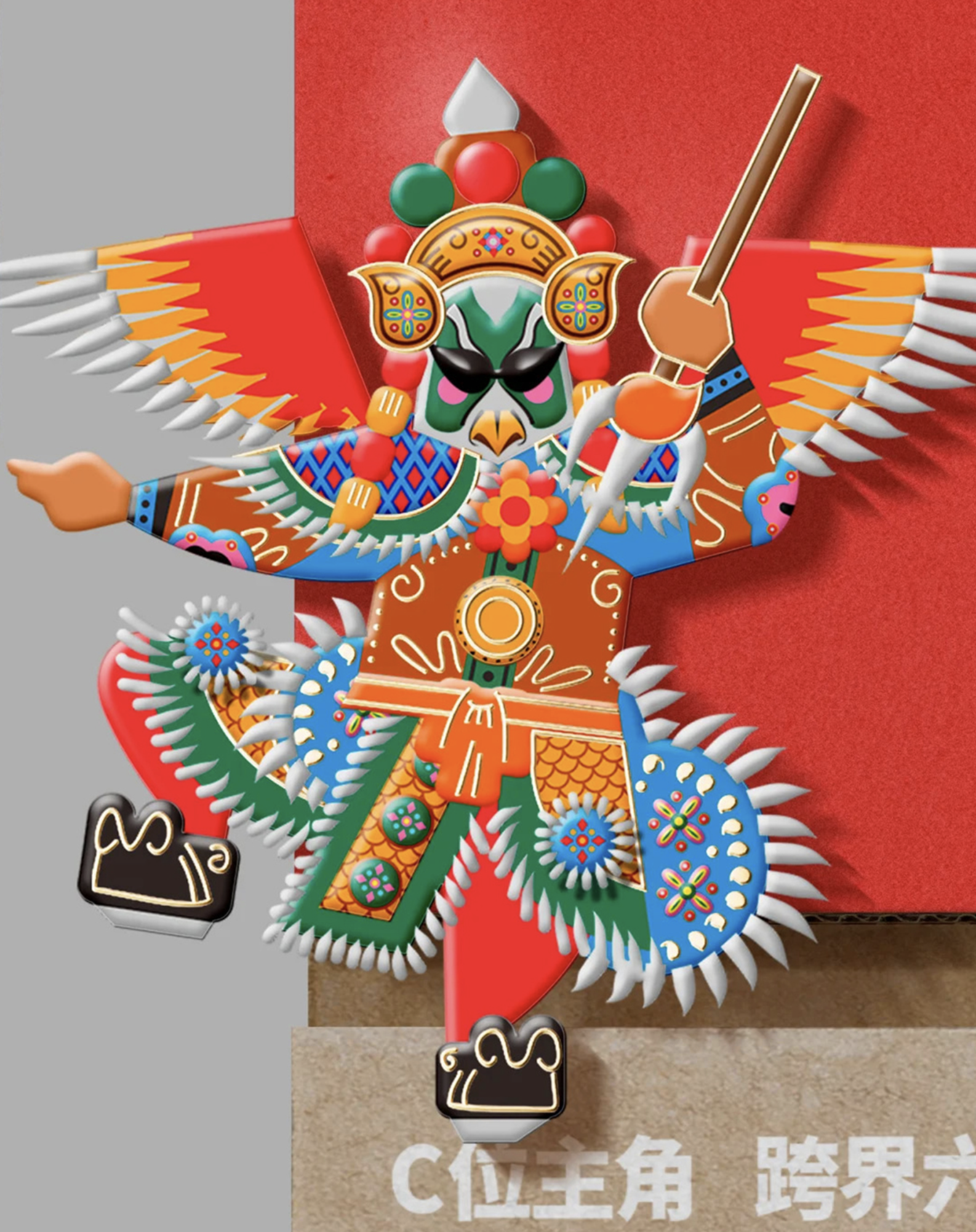 在人物符號的提取上,他從潮汕民間熟知的故事與形象中尋找靈感,將薛仁貴、蓋蘇文等經典人物賦予現代潮流的人設標簽,讓傳統形象擁有年輕化的表達。薛仁貴被定義為 “C 位主角跨界六邊形戰士、大器早成、人設永不塌的草根逆襲大元帥”,蓋蘇文則是 “黑紅體質武力值頂配、自帶玄幻 IP 光環的技術流 BOSS”,這種極具網感的人設解讀,讓傳統人物跳出刻板印象,與當代年輕人的審美和語境同頻,也讓潮汕的民間故事以更有趣的形式被傳播。