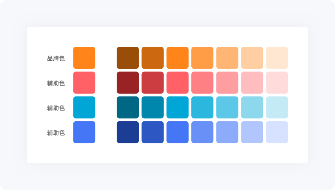顏色是產品設計風格的基礎,核心是按功能屬性分類定義,形成標準化色庫: