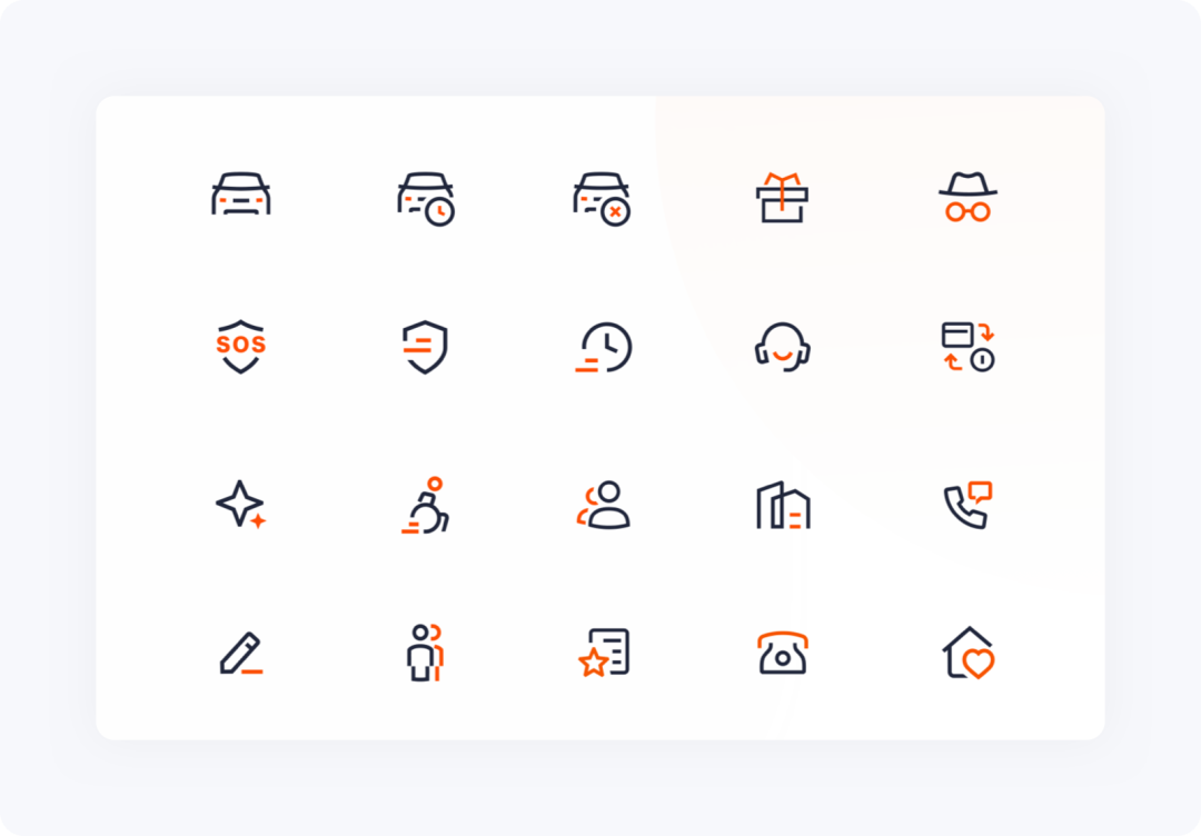 - 用 keyline 柵格控制不同形狀圖標的大小、比例,確保視覺協調性;