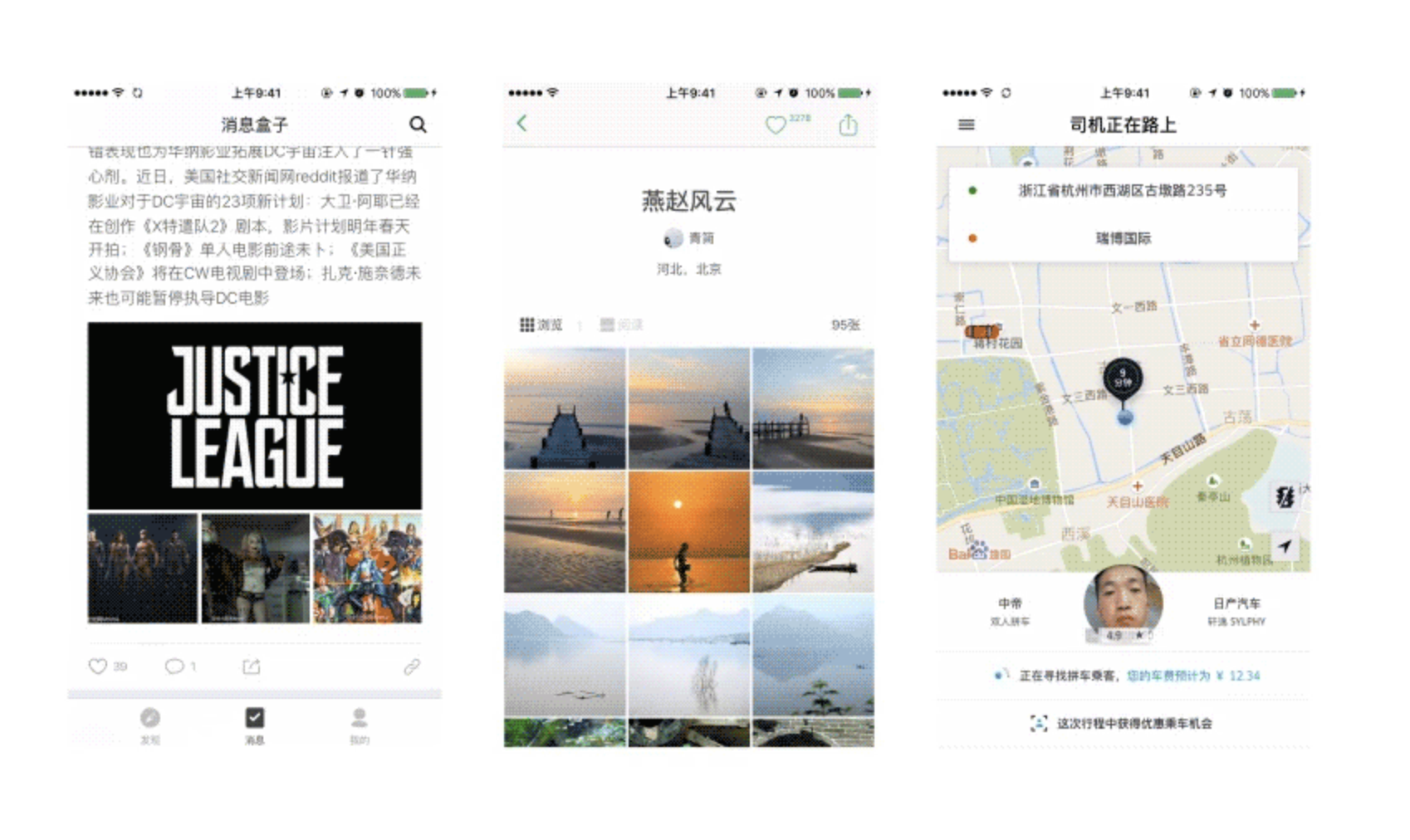 即刻 APP 中,點擊無鏈接的內容時,內容會自然左右晃動,同時頂部彈出提示文案,反饋自然且無視覺干擾;豆瓣的大圖查看功能,按住圖片移動可顯示背景并自由滑動,松開即返回小圖模式,交互邏輯貼合用戶操作習慣;Uber 點擊查看司機信息時,地點信息自動隱藏,司機照片與車輛信息分開展示,查看完畢后自動收回,既提升了界面的使用效率,又讓動畫過渡流暢自然,這些都是微交互設計的優秀實踐。