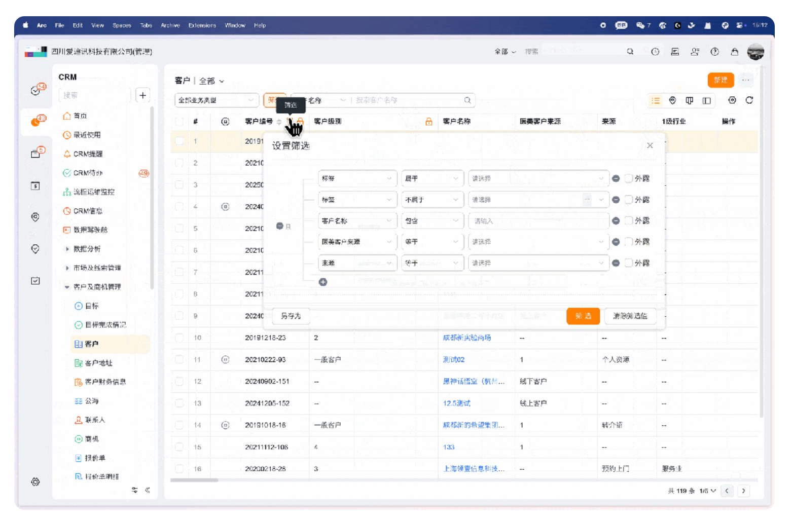 其次用戶理解成本也會相對過高,因為很多行業屬性相對較為簡單的 B 端產品并不會使用這類篩選,對于用戶初次使用也會有不小的負擔。但表頭篩選目前的普及率仍然比較低,使用比較頻繁的便是紛享銷客。