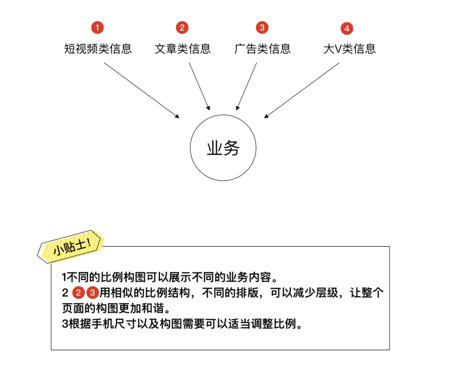 - 同一功能版塊內,構圖組合形式不超過 3 種,避免視覺過于雜亂,降低用戶識別效率。