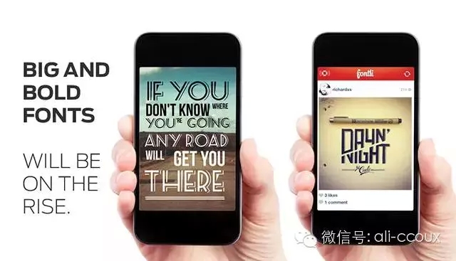 隨著滾動(dòng)式瀏覽方式的普及,以內(nèi)容為核心的設(shè)計(jì)思路,在界面設(shè)計(jì)上會(huì)愈加明顯,沒(méi)有過(guò)多修飾的排版結(jié)構(gòu),不再盲目追求將很多內(nèi)容擠在一屏以內(nèi),反之是加大間距和行高,讓用戶的閱讀更加聚焦,享受到沉浸式體驗(yàn)。大屏手機(jī)的流行,也促進(jìn)了大字體在移動(dòng)端APP上流行的節(jié)奏,大字體會(huì)賦予界面以層次,提高特定元素的視覺(jué)重量,讓用戶難以忘懷。字體夠大、夠優(yōu)雅、夠獨(dú)特、夠貼合,也就能提升頁(yè)面的氣質(zhì)和特色,而這正是移動(dòng)端APP設(shè)計(jì)的另外一次重要的機(jī)會(huì)。