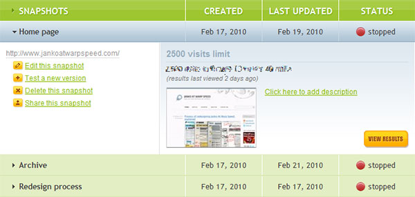 CrazyEgg應用了整行選擇的方法展開當前選中行的詳情(稍后我們會談及該模式),鼠標懸停的行會高亮顯示。我很喜歡他們對這塊區域以及其他的應用的設計。