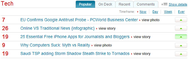 把操作放在每一行數據的開頭或結尾,是個簡單方法。如下所示,Mixx把操作放在了每一行的末尾,這樣很容易進行投票的操作。