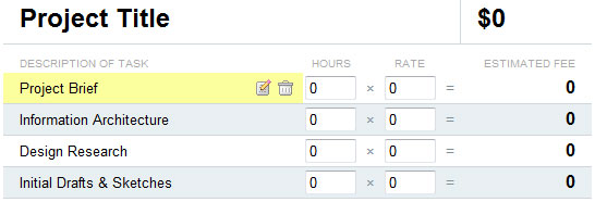 如果有多重操作,可以采取鼠標懸停操作方式,該方式是由行內操作引申而來。鼠標懸停和鼠標離開分別顯示和隱藏操作,通過這種方式可以節省界面空間。Project Estimator by Astuteo 對每一行都有編輯和刪除操作,鼠標懸停到某一行的時候則顯示操作按鈕圖標,離開則不顯示。