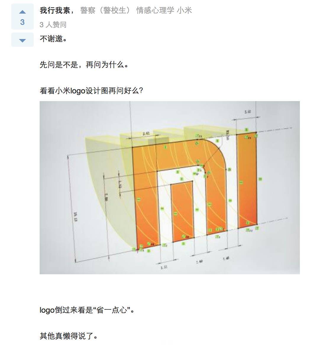 即便小米的LOGO當(dāng)年剛發(fā)布的時(shí)候還是有抄襲或是撞車(chē)嫌疑,但從截圖回復(fù)來(lái)看,小米公司內(nèi)部還是對(duì)這個(gè)LOGO認(rèn)可, 但我不覺(jué)得在設(shè)計(jì)之初,設(shè)計(jì)師就知道他設(shè)計(jì)的LOGO倒過(guò)來(lái)還能扯上“心”這個(gè)層面的意思。