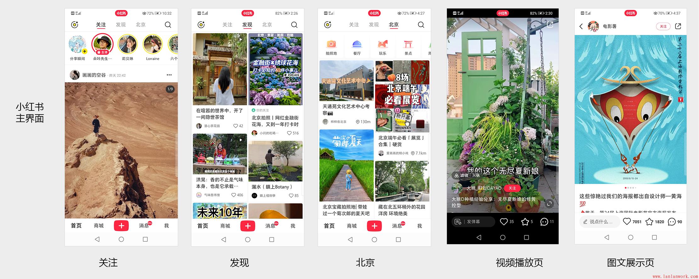 感覺小紅書比什么抖音吸引我(在沒有搜索之前推薦的東西就很吸引我),小紅書里可以學到很多東西,廚藝、書法、服裝搭配、園藝、家居、展訊,推薦的東西基本上是我感興趣的。其實這兩個APP的內容本身都是很全的,小紅書在發現和北京欄目頁面是2行2列,一頁可以展示4個視頻內容和標題,節省了刷屏選擇的時間,相對高效。