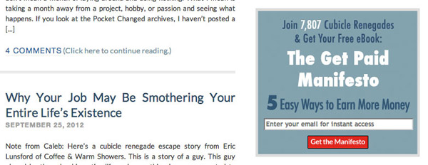 Pocket Changed的訂閱表單是個(gè)不錯(cuò)的例子,他們向訪問者展示了當(dāng)前已有多少人進(jìn)行了訂閱下載;此外,他們也非常簡單直接的讓訪問者了解到在填寫郵箱后可以得到什么。如果可以再加入一些來自真實(shí)訂閱用戶的贊許反饋,這個(gè)表單的轉(zhuǎn)化效果會(huì)更好。