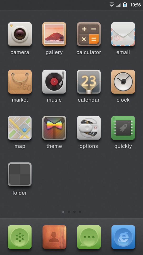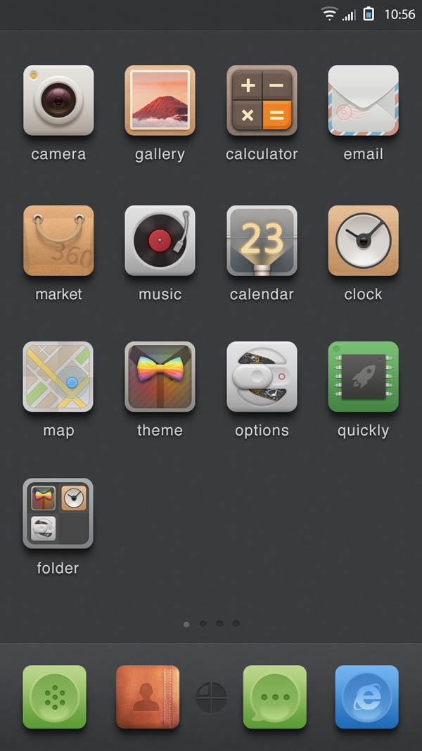 《優(yōu)格主義》為簡約擬物設(shè)計(jì)風(fēng)格,微起伏,輕材質(zhì),中性配色,嘗試創(chuàng)造一些視覺亮點(diǎn)。主題背景沿用了由錘子系統(tǒng)引領(lǐng)的深色系簡約風(fēng)格,給圖標(biāo)提供一個(gè)良好的展示平臺(tái)。以舒適性和易辨識性為核心設(shè)計(jì)原則。希望你能喜歡!