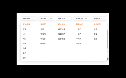 我們可以通過,將這些選擇進行分類打包,以站酷為例子將類似功能進行分類或者分頁面,幫助用戶梳理進行梳理。