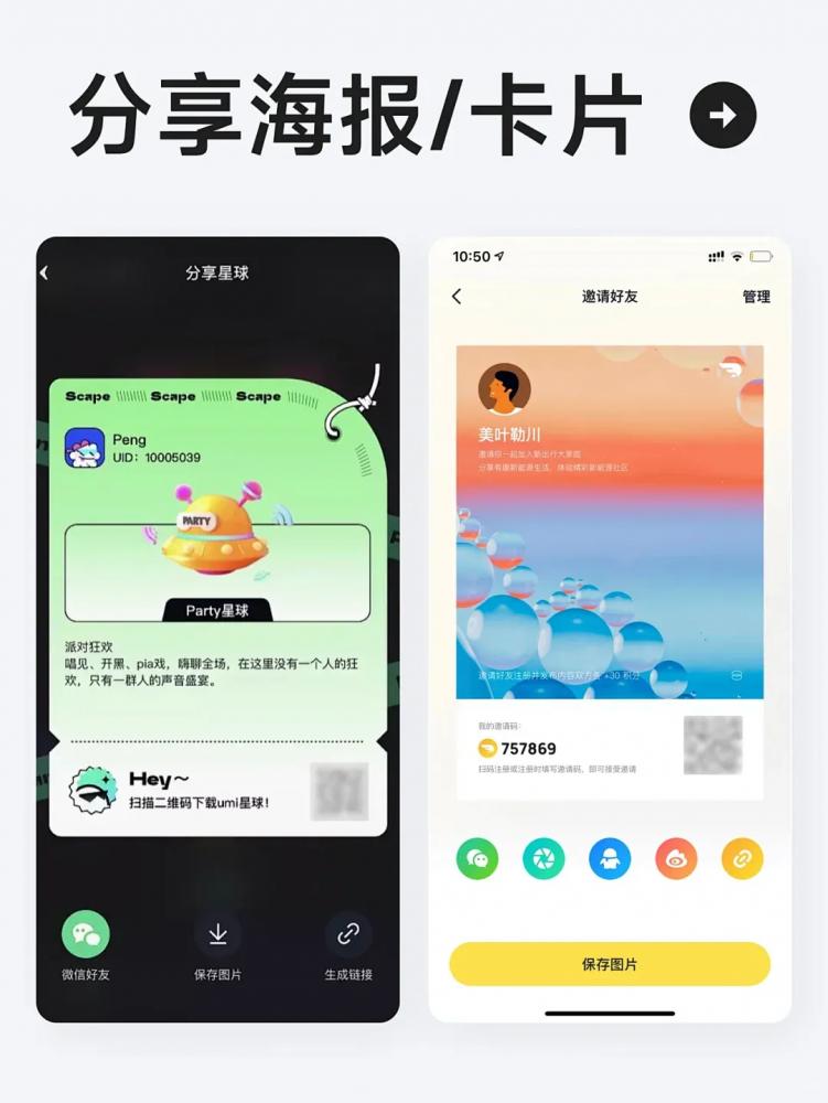 例如很多社交娛樂類型的應用右上角有一個“+”入口,里面會放置部分常用功能。部分浮層底部沒有設置不透明度的蒙層,為了與頁面信息更好的區分,會給浮層容器加上投影,避免與底部信息混淆。