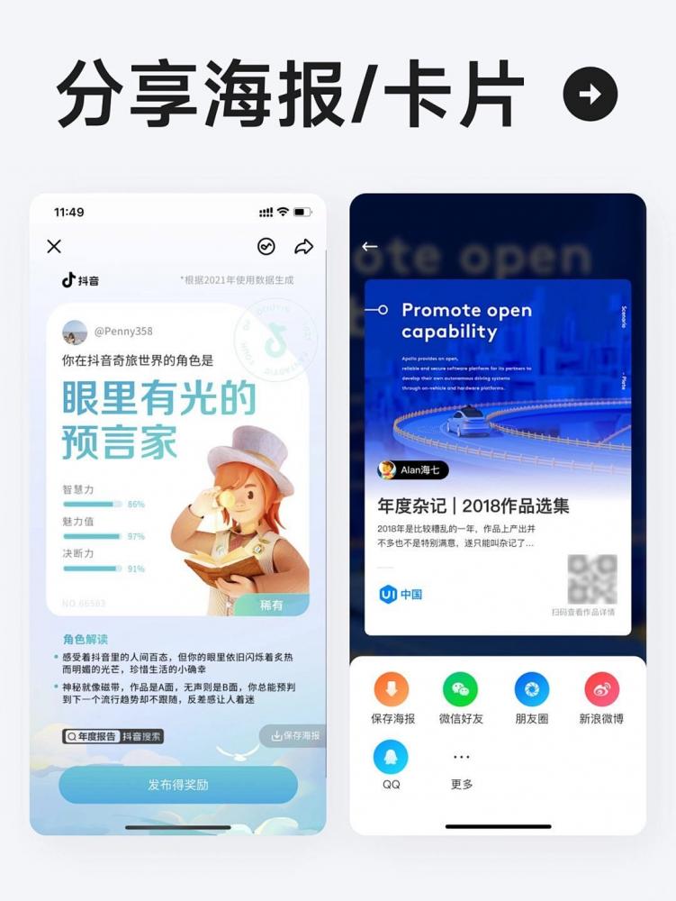 動作欄是通過用戶主動操作后彈出的內容信息,基本都是從底部彈出,屏幕占用比例根據內容量的多少比較隨意,從小區域、半屏、再到全屏隨處可見。